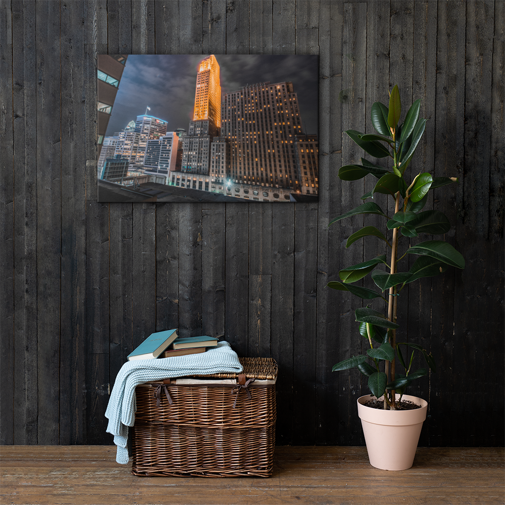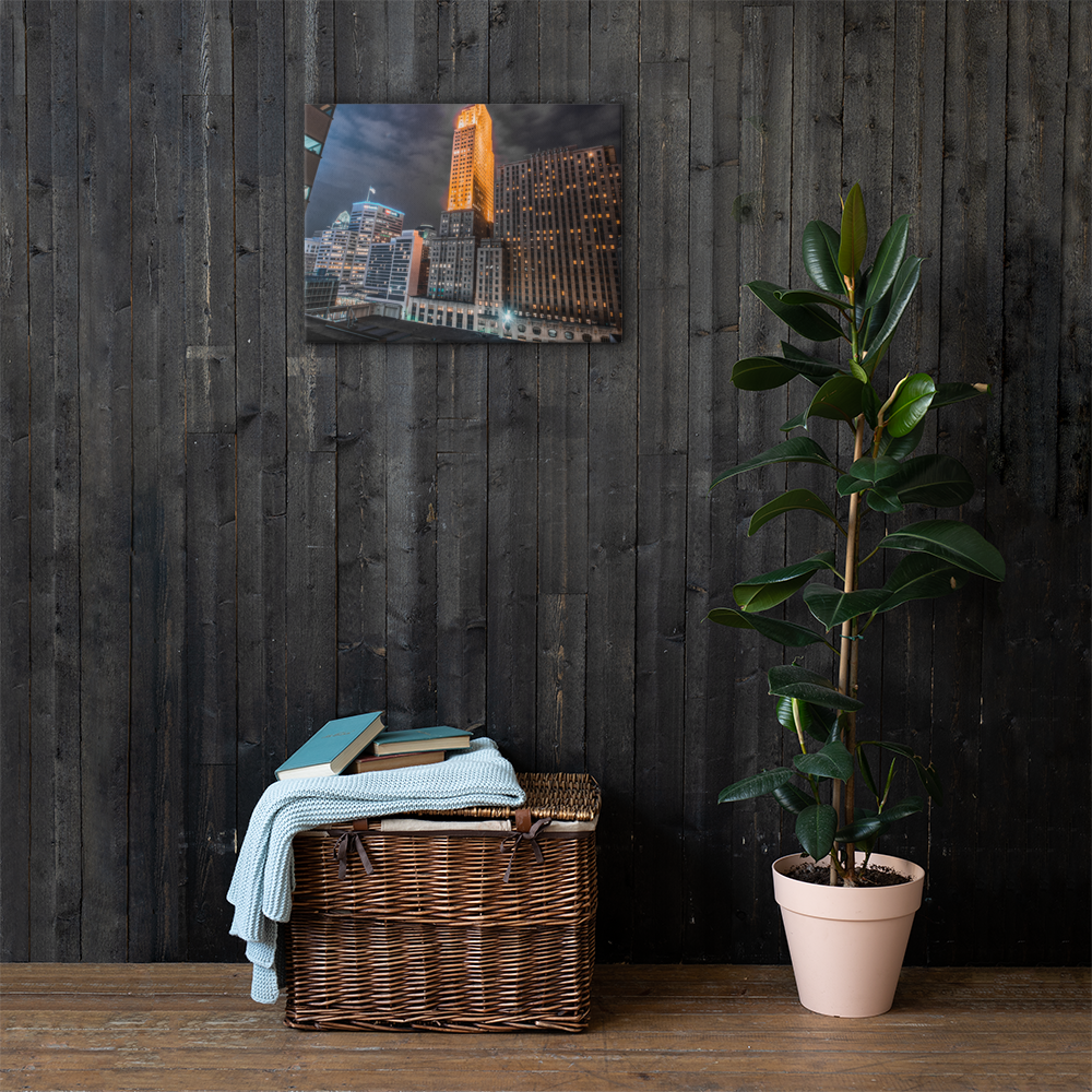 This canvas print is sure to make a statement in any space. It's hand-stretched on a poly-cotton blend canvas with a matte finish coating.