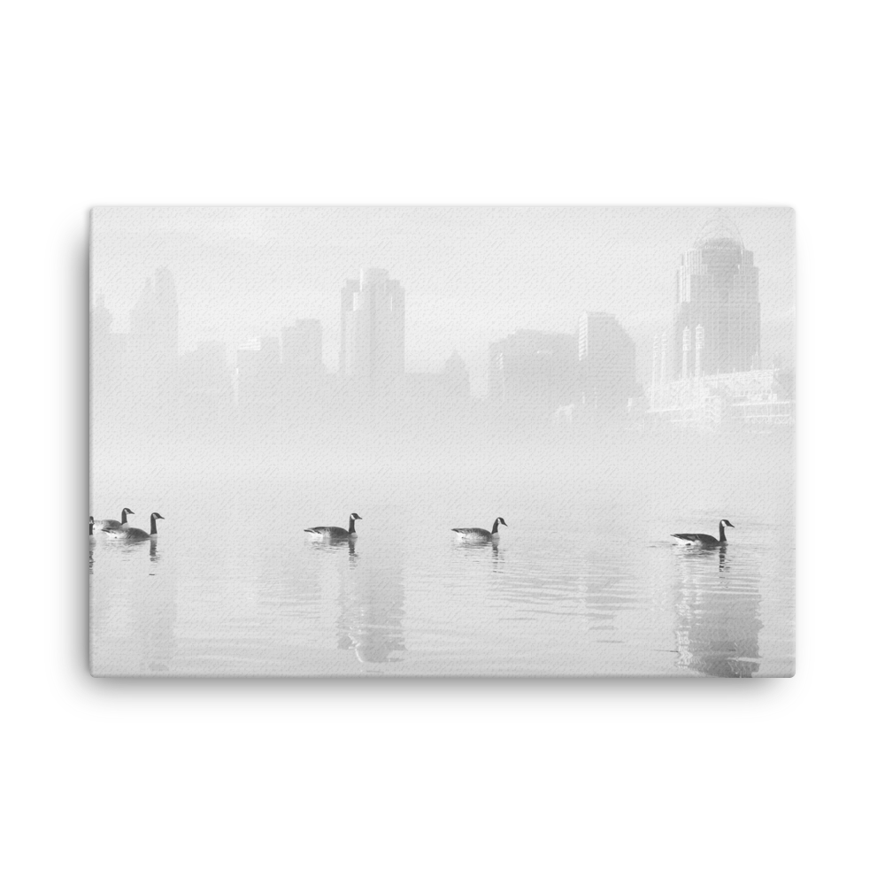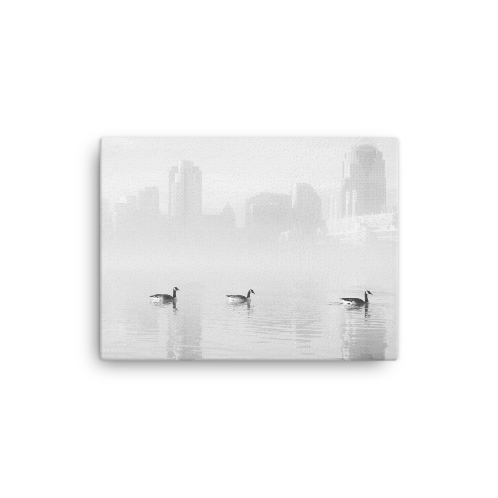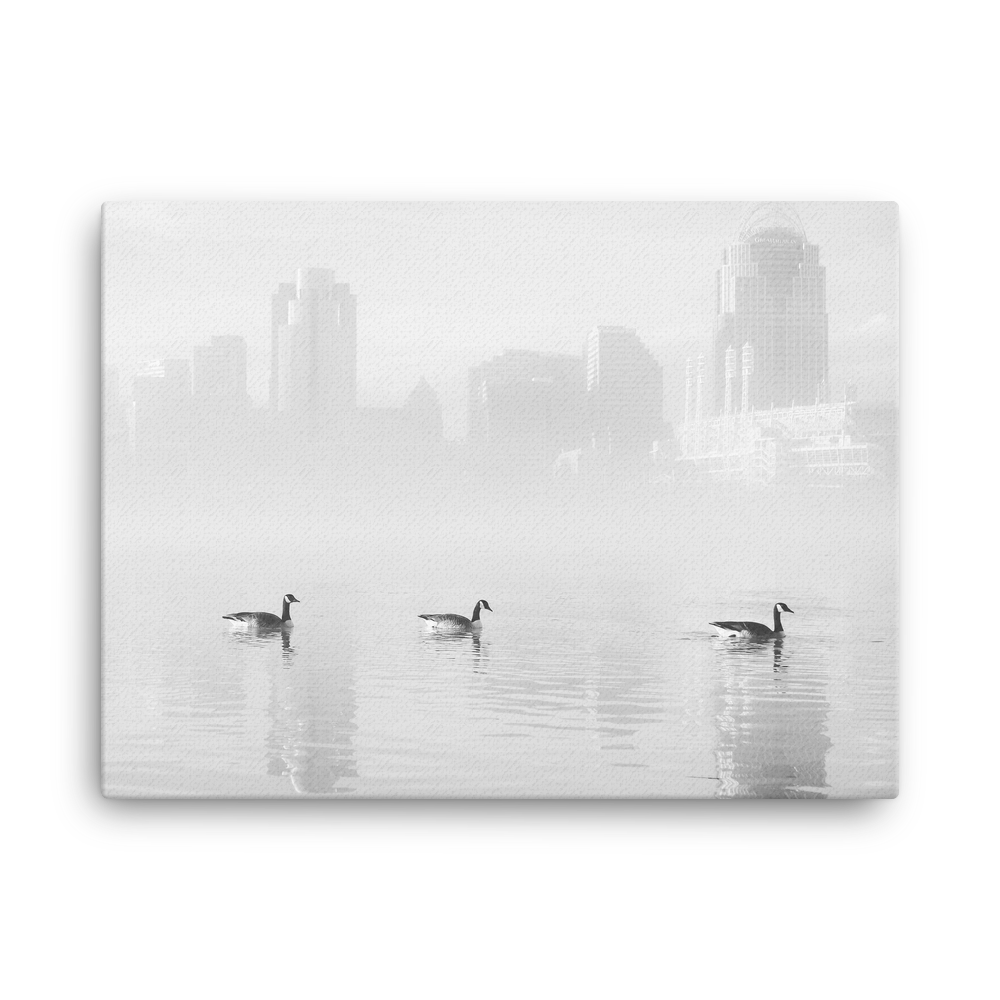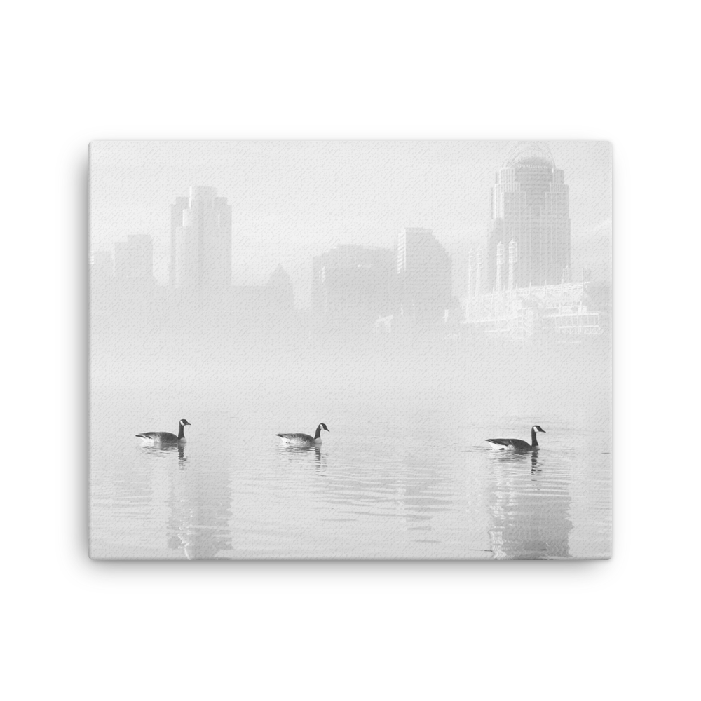 "Ducks On The River" - B&W Canvas