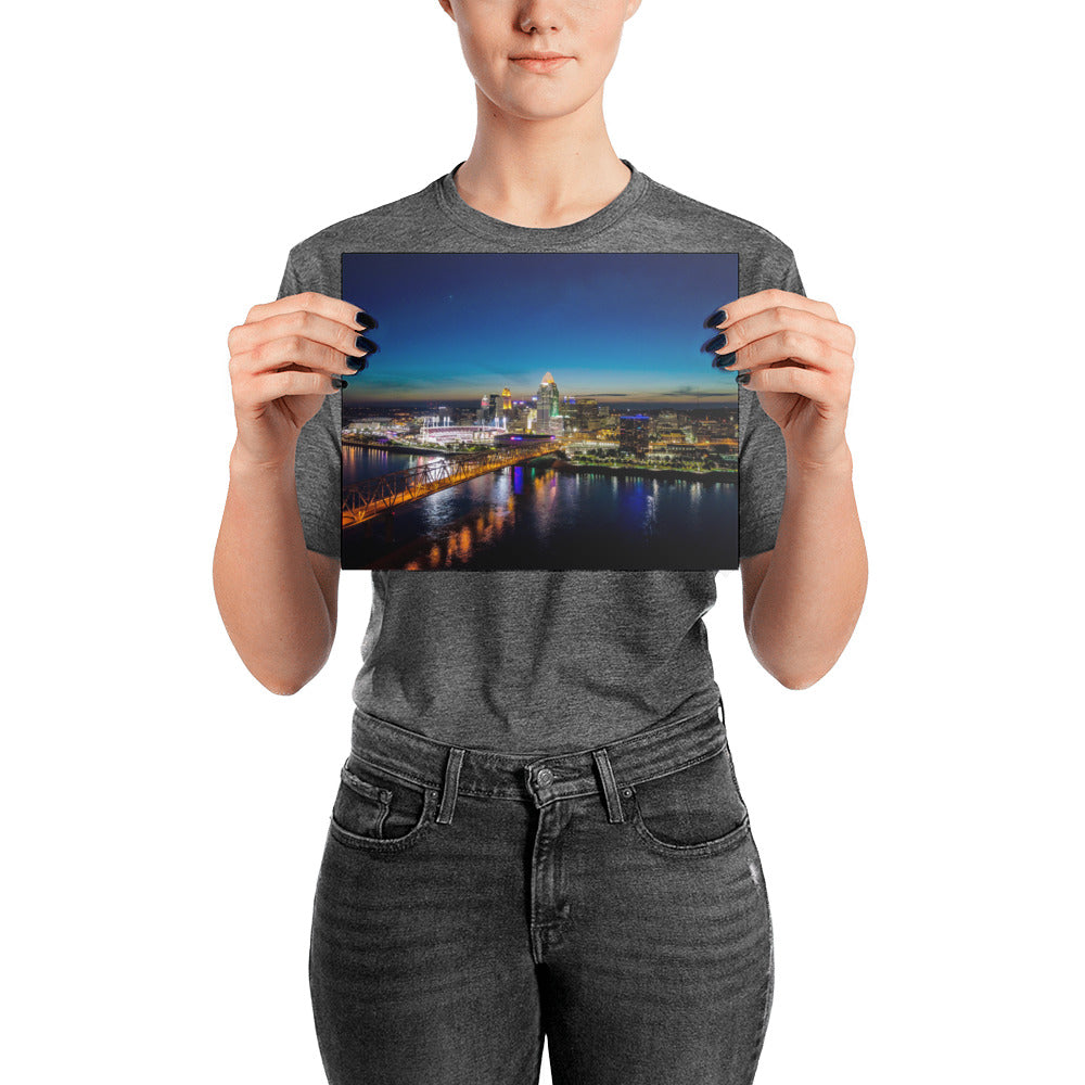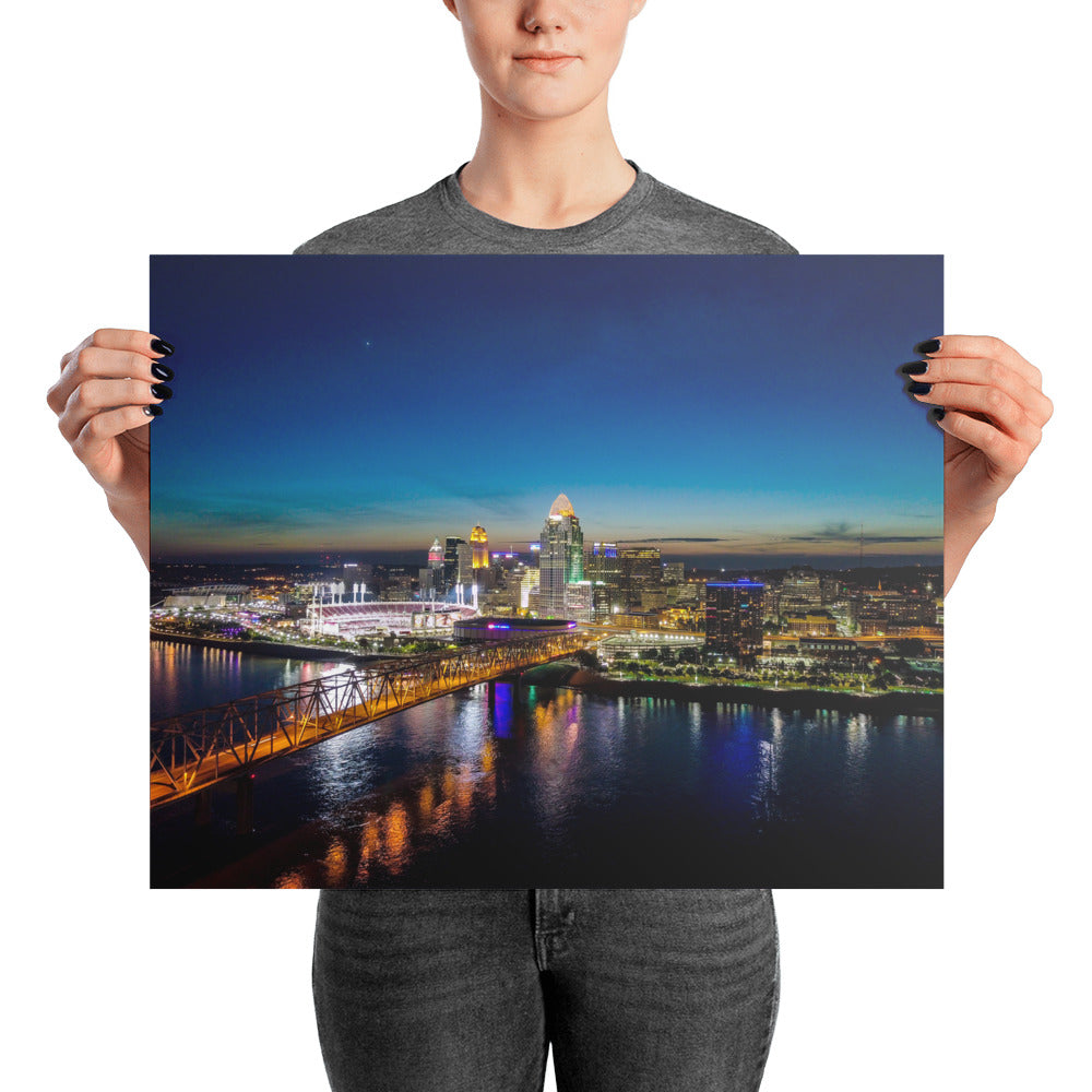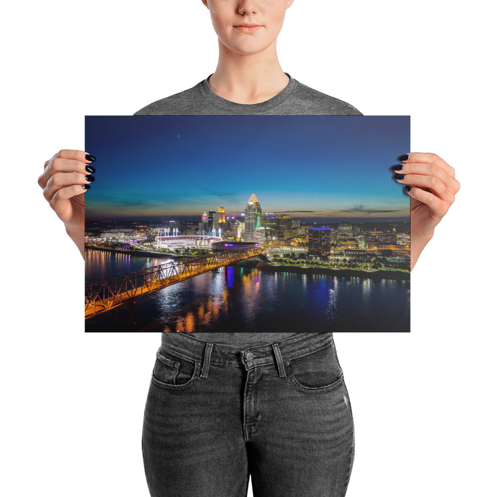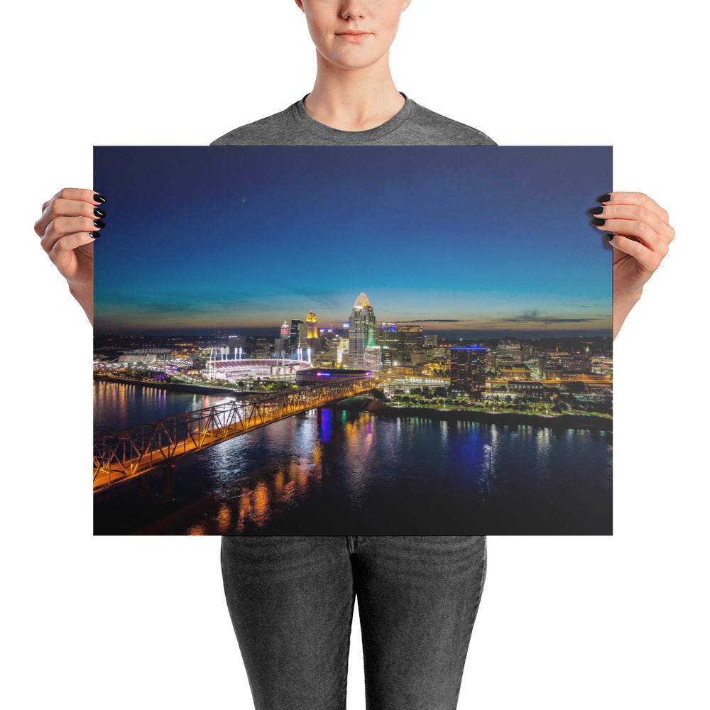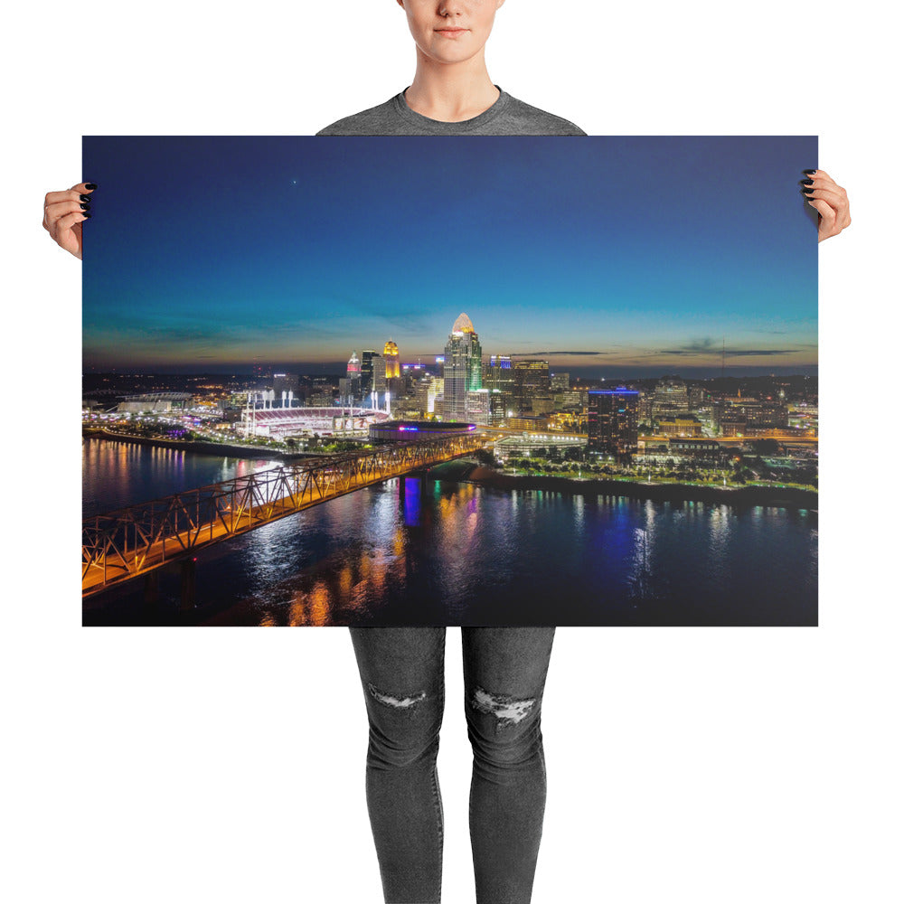 "Night Drone Shot of Beautiful Cincinnati" - Poster